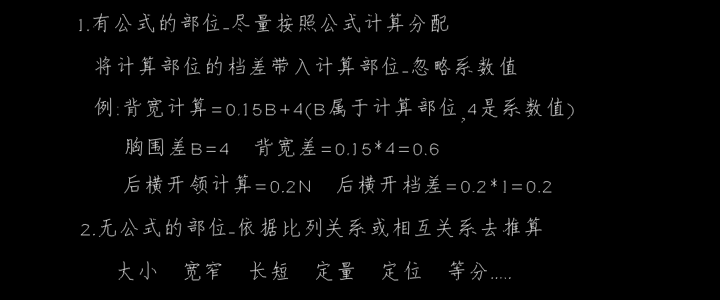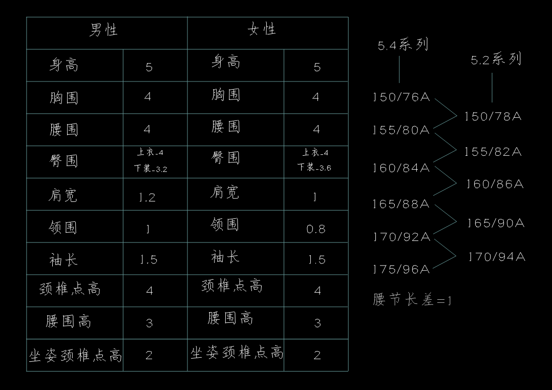 目录 搜索 展开 ET软件相关ET排料相关ET排料输出PLT与打印机相关配置女装新潮版型参考网站女装上衣系列制版女装上衣原型裙相关领子结构原理袖子结构原理省道转移省转扭结处理上衣省道处理方式推板放码工具介绍各类服装的推挡放码女装裤子系列制版各类裤型制版细节女装裤子-苏苏裤原型建立各类裤型系列剪切制版 暂无相关搜索结果! 阅读次数:8 本文档使用 MinDoc 发布 各类服装的推挡放码 推挡基础档差构成1、规格尺寸表建立:设计中间号型尺寸,通过档差设计生成2、档差构成:摘取国标标准体差值参考-5.4系列3、档差分配:档差通过计算或比例关系分配到结构关系中 裙子推板放码推挡技巧:先定方向 公式先推 从长到短 从宽到窄 省长与省量不推 裤子推板放码上衣推板放码作者:于浩 创建时间:2025-10-21 22:44最后编辑:于浩 更新时间:2025-10-23 16:38