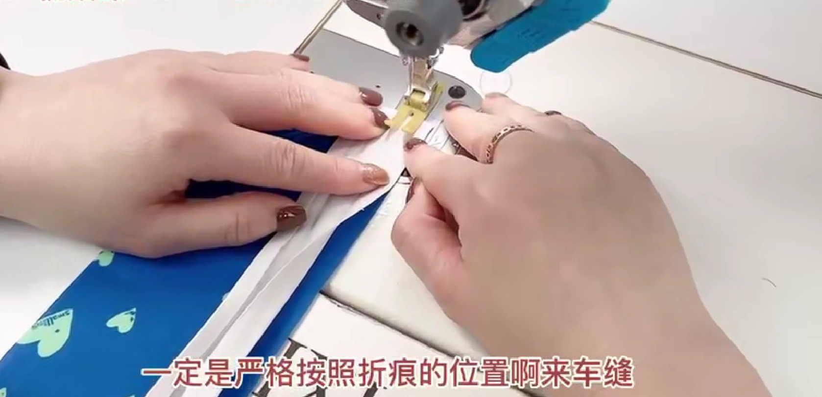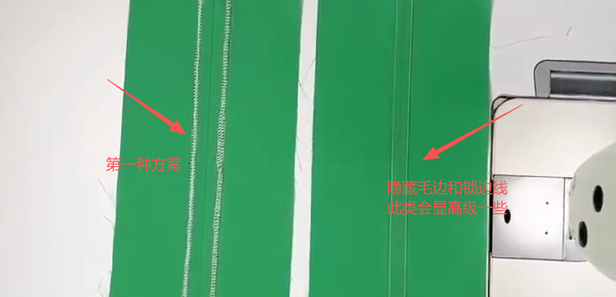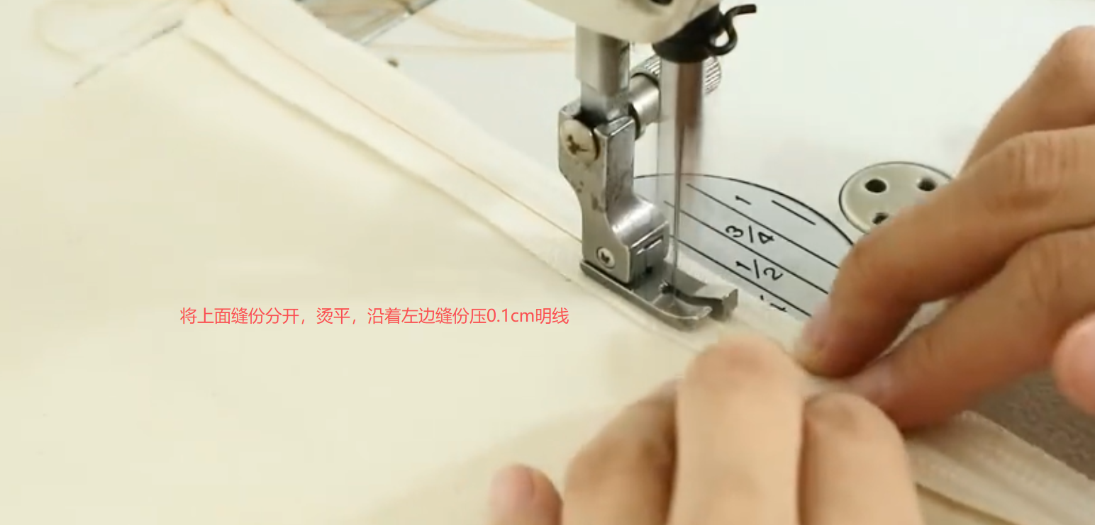 注意要点:在压0.1CM的线时,中间缝份一定要左右摊开,不能重叠