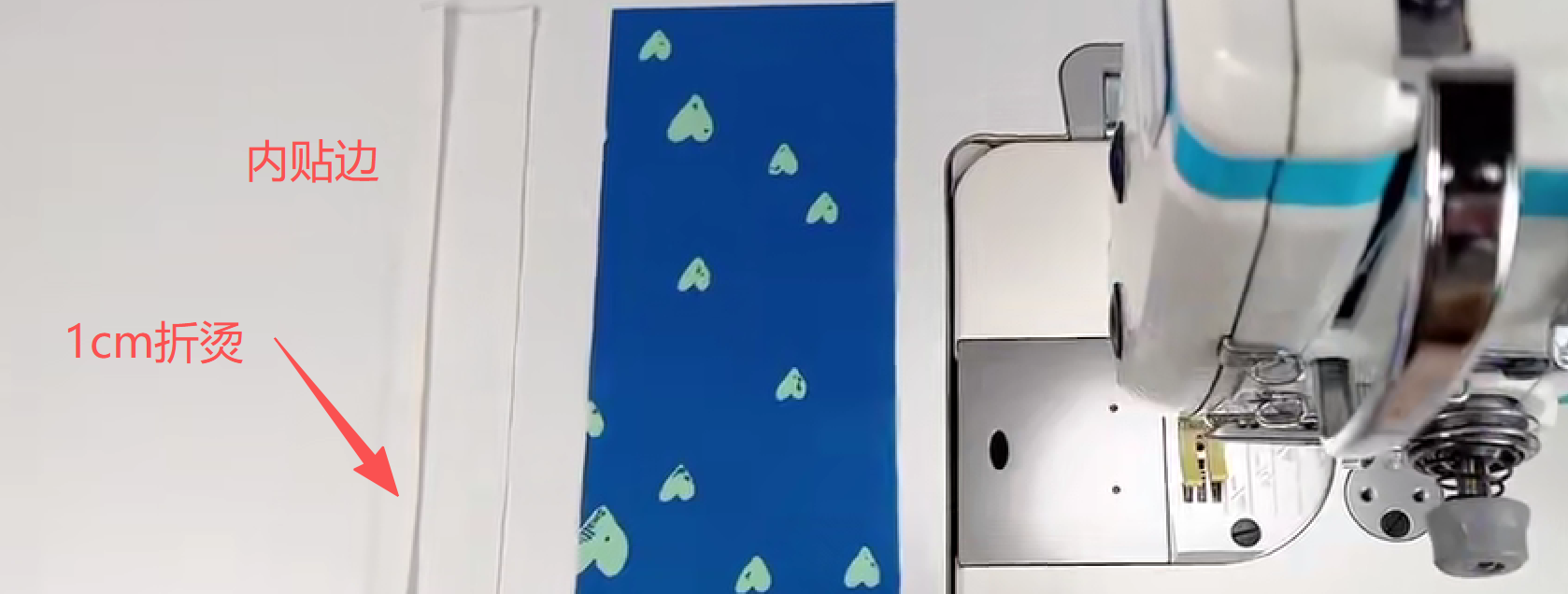 内贴边缝边0.1cm固定,保证贴边布外露