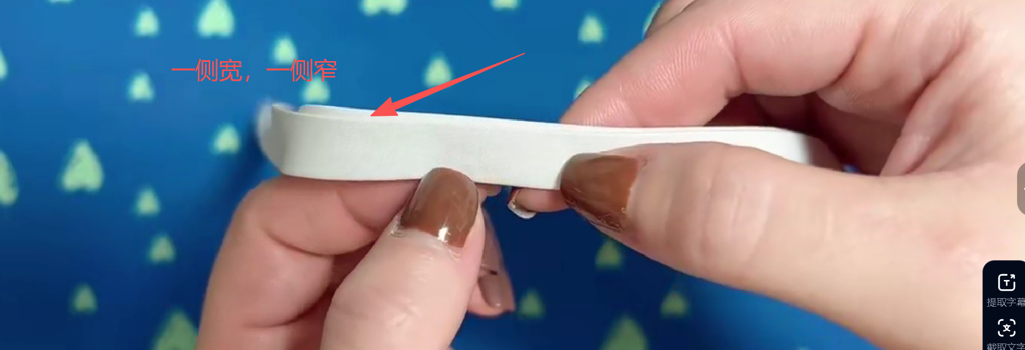 4cm滚边条做熨烫,折叠1cm熨烫,再折叠1cm熨烫,再折叠1cm熨烫,烫后后会有0.1cm左右的牙边,就是一侧宽一侧窄