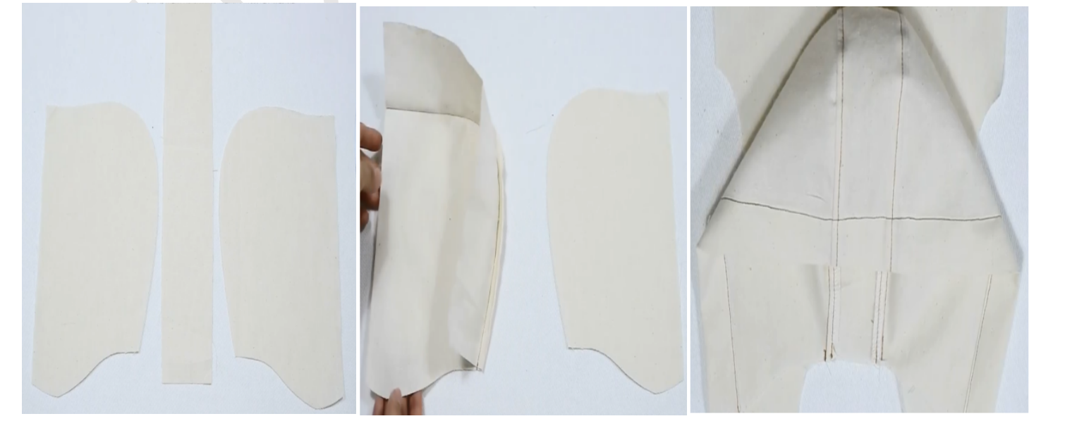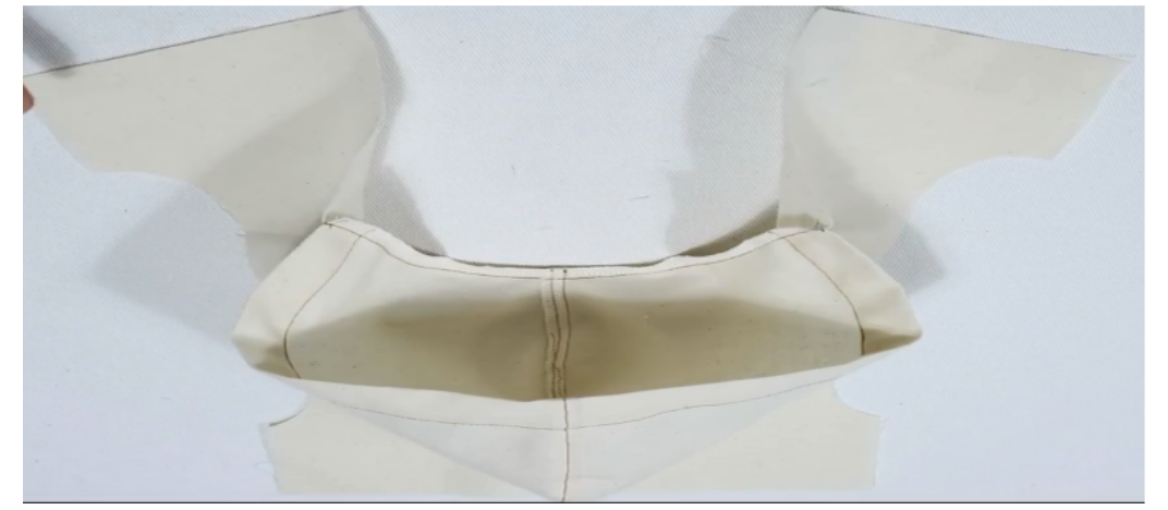 1、裁片→烫衬→缝合表布、里布的肩线,劈缝烫