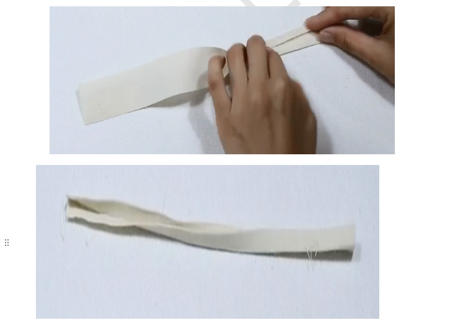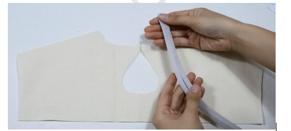 1、准备包边条:针织或梭织45°斜裁3cm宽,长度大于水滴形状的布条