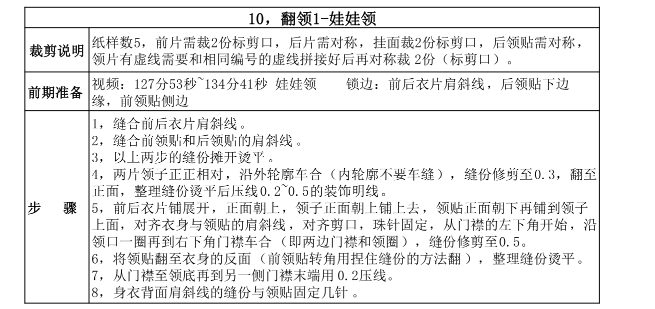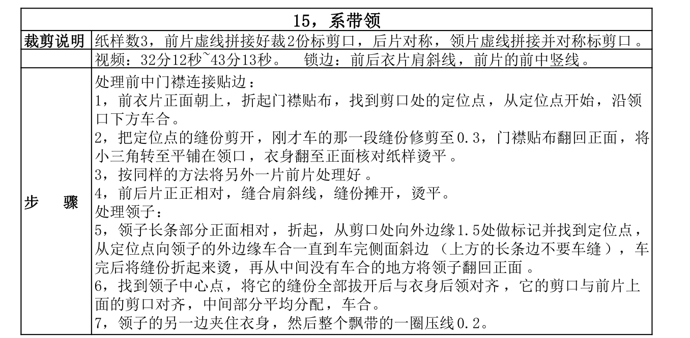 领子工艺