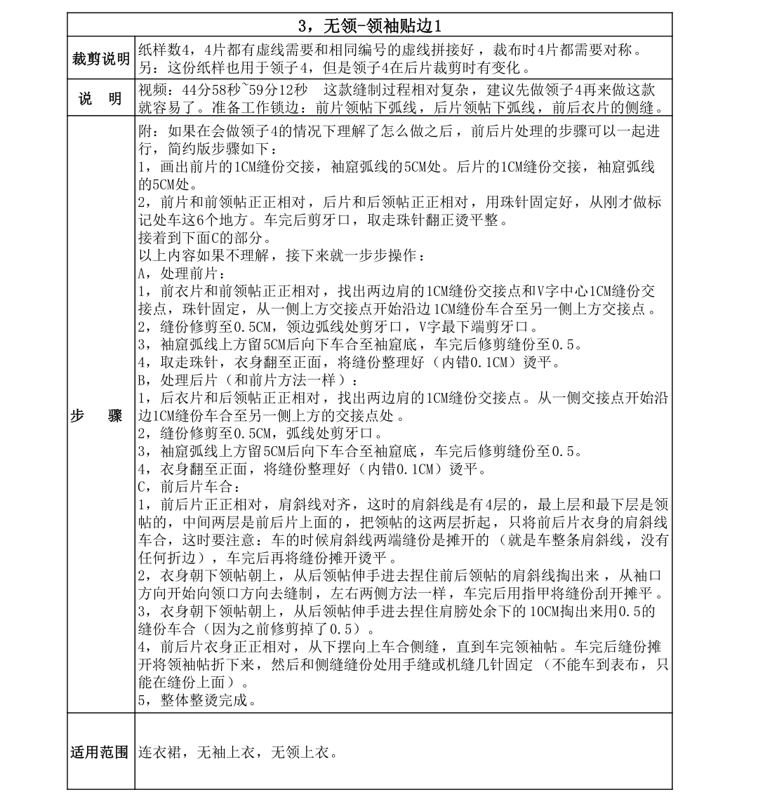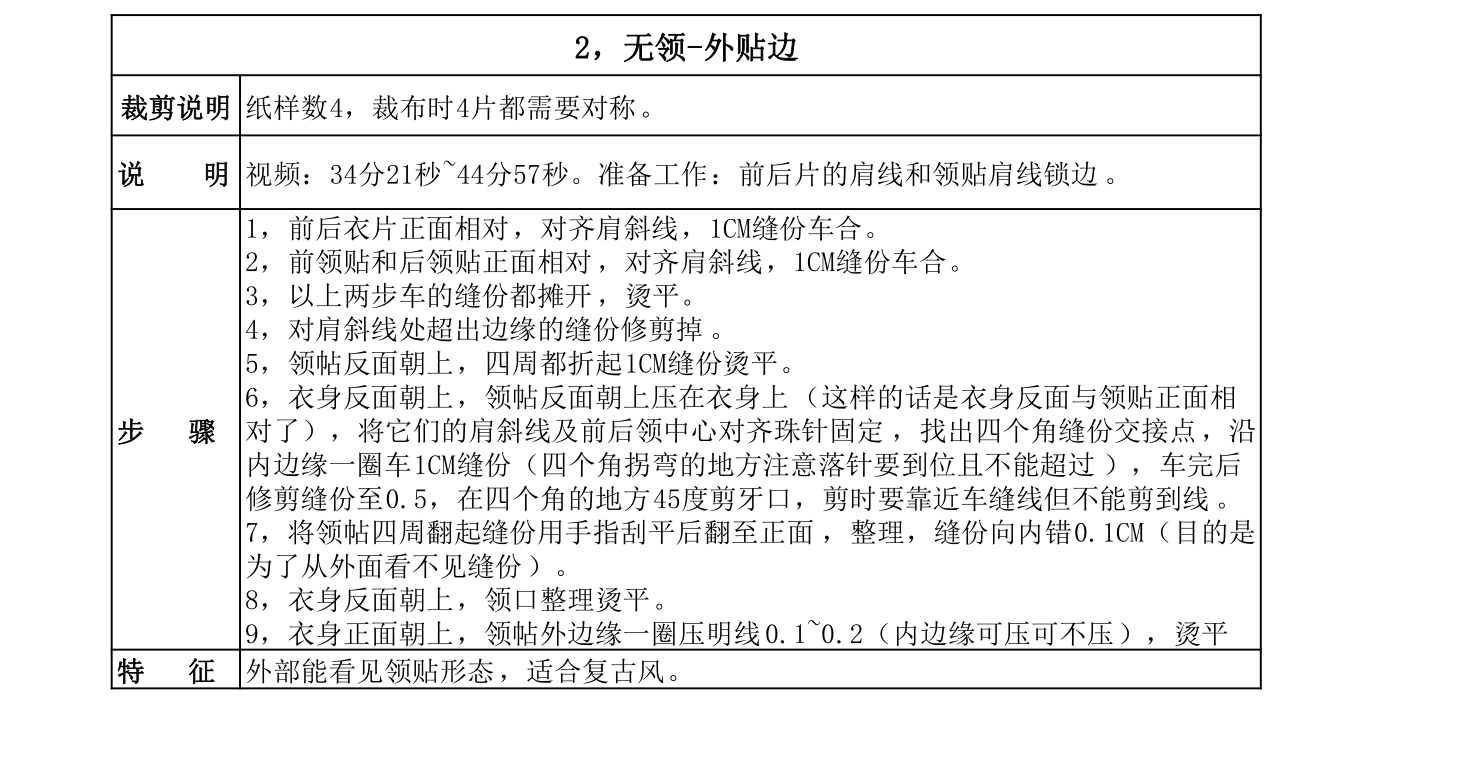 1、领口开叉–贴边叉