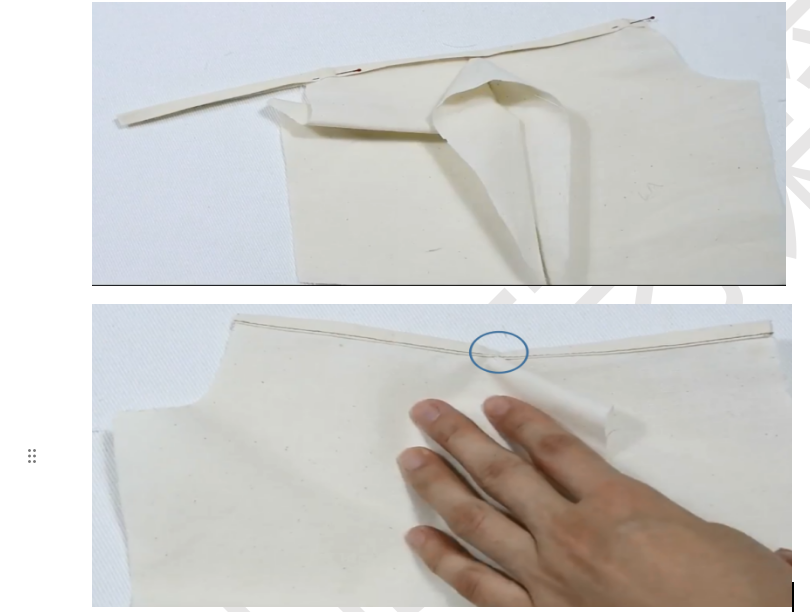 3、翻面,缝份错0.1,整烫,缝合侧缝线