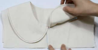 4、肩缝处固定领贴和肩线的缝份