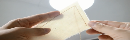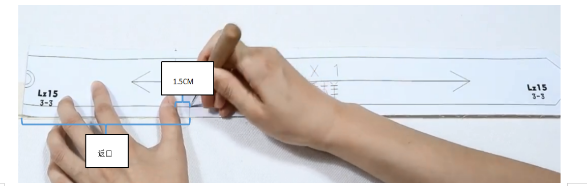 2、领贴外缘向反面折烫1cm缝份