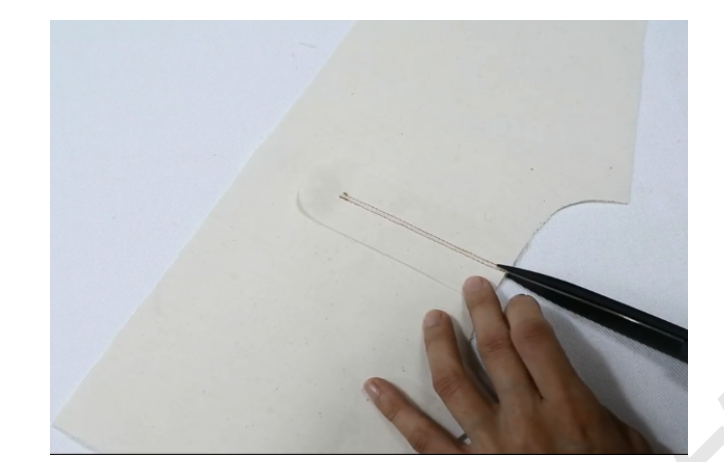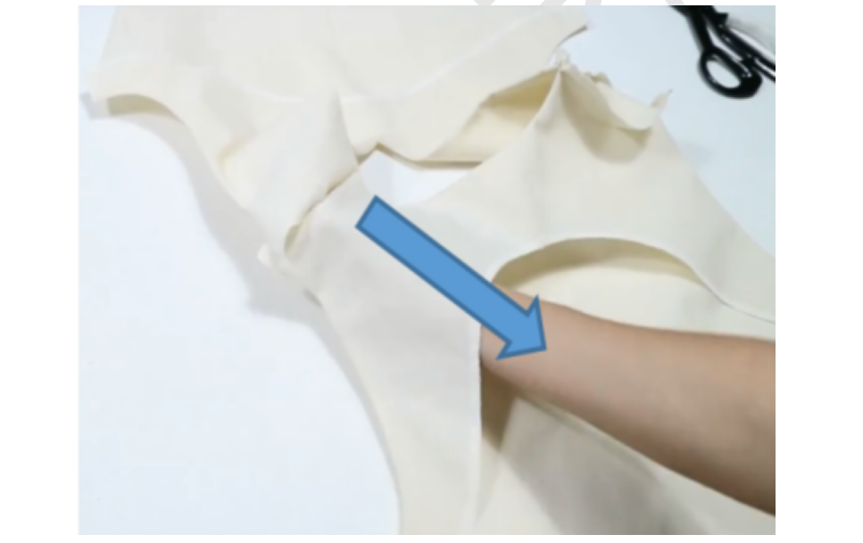 4、同样手法缝合10cm袖笼缝隙