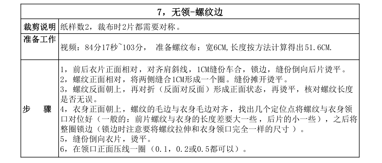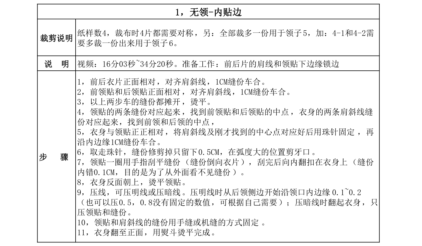 4、领贴内翻,缝份错0.1,烫平。领围内边缘压0.1\0.2线(明线或暗线)