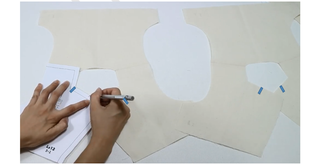3、标记对位点:表布里布翻领和驳领交接的位置